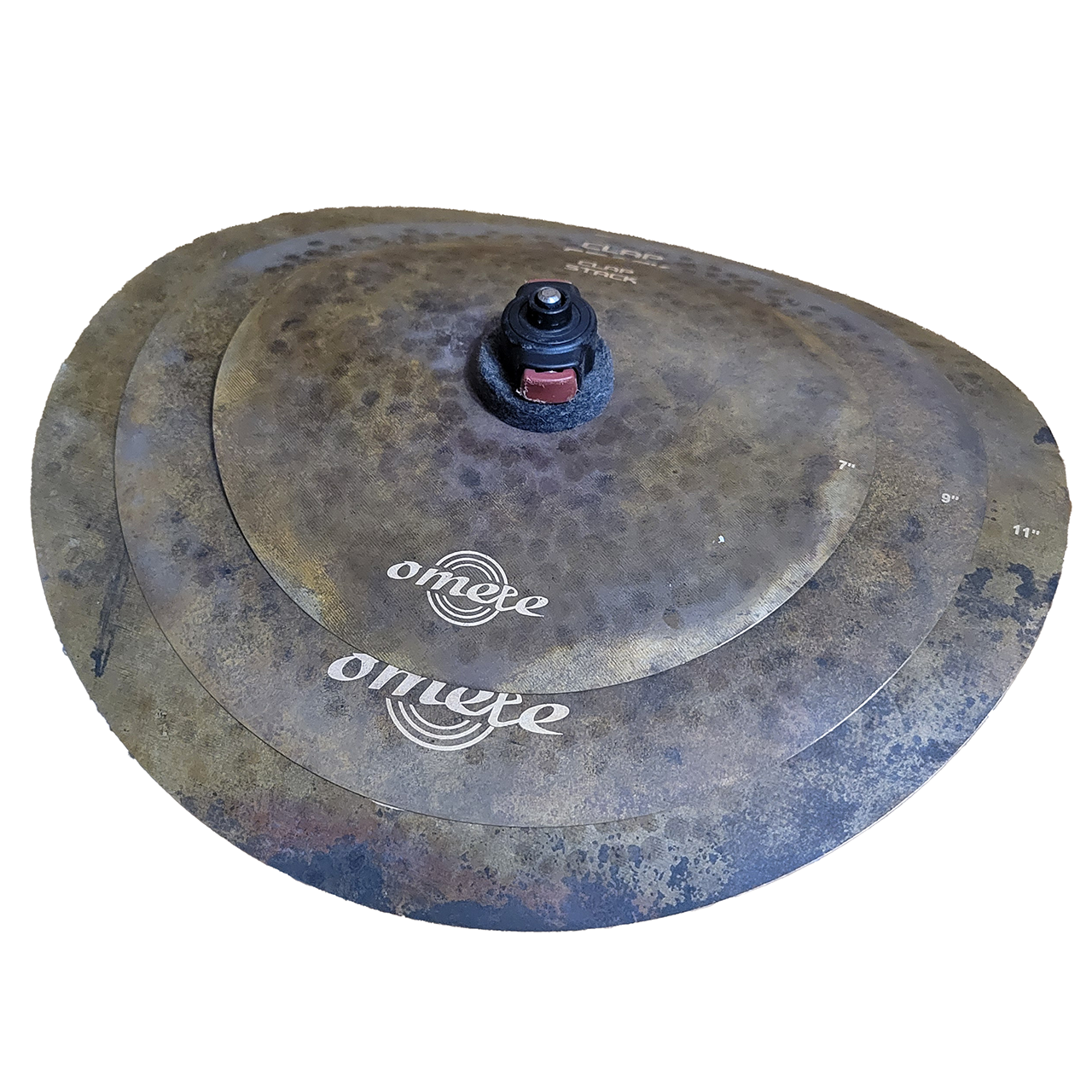 電子ドラムのクラップのようなサウンドを醸し出すスタックシンバル。小回りの利くサイズ感で、自由度の高いセッティングが可能。7インチ+9インチ+11インチの3枚組