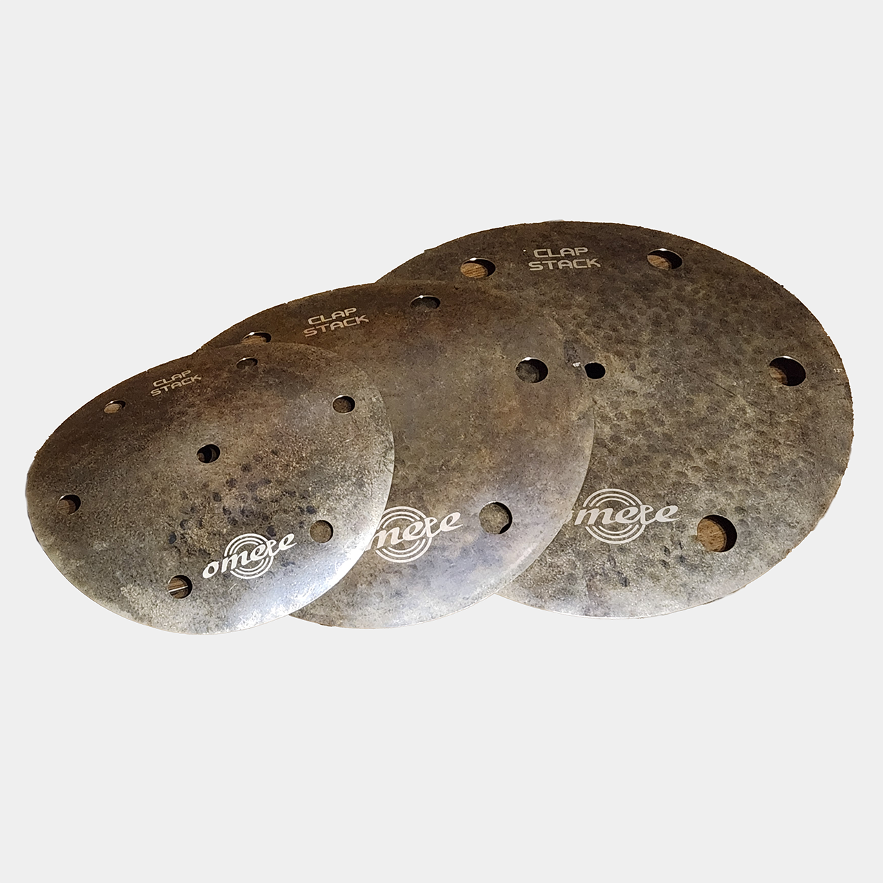 電子ドラムのクラップのようなサウンドを醸し出すスタックシンバル。穴あき加工で今まで煮なかった抜け感を実現。8インチ+10インチ+12インチの3枚組