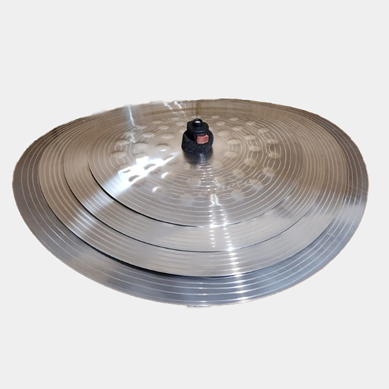 電子ドラムのクラップのようなサウンドを醸し出すスタックシンバル。素材に鉄を使用して、低価格ながら往年のクラップサウンドを実現。10インチ+12インチ+14インチ+16インチの4枚組