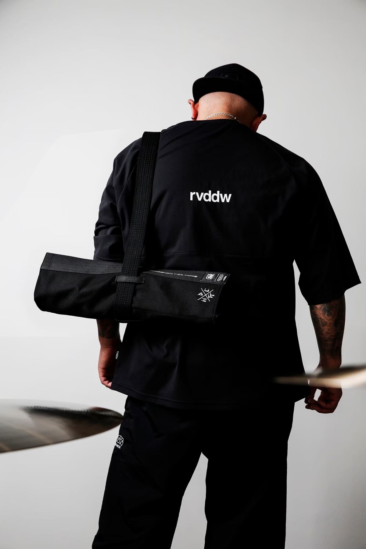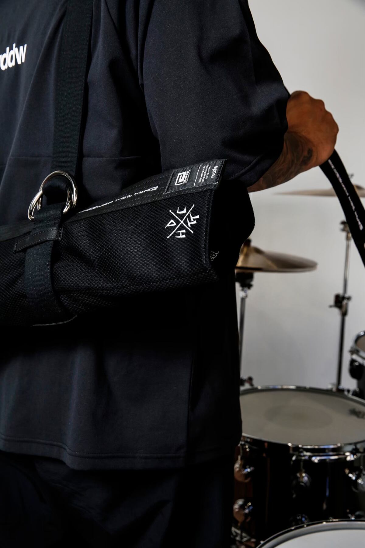 「DTT x rvddw STICK CASE」は、柔術着の素材で製作されており、⿊帯で締めて、肩から背負うような スタイルで使⽤していただけます。